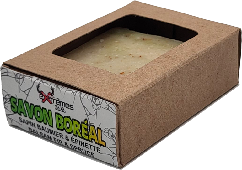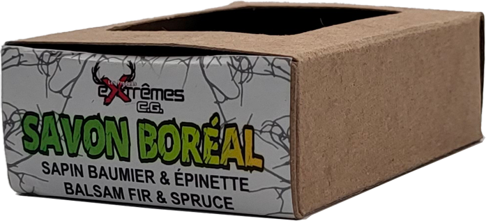 Savon avec odeur d'épinette noire et de sapin. Un parfait camouflage de vos odeurs lors de vos chasses !